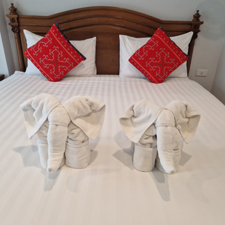 Our journey to Chiang Mai next morning was on the Green bus service... very cheap and reasonable. However, the 3.5 hour journey was along very windy mountain roads, and we both felt a little queasy! Luckily, our hotel in Chiang Mai was a gem. The Villa Thai Orchid is just around the corner from Chedi Luang and is truly lovely. We had a very comfortable room, and the price included a super breakfast. In addition there was a 24 hour free snack bar, with tea and all sorts of things to eat! The icing on the cake was a basket in the room, inviting you to put your laundry out each morning and it would be laundered free, and returned by the evening. The young couple running it were so sweet and kind, and helped us with all sorts of things. We loved the little garden and the shoe racks, and we were asked to choose complimentary slippers to wear indoors. Our favourite place to stay so far!