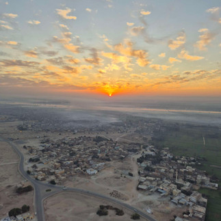 There was very little wind, so movement was slow but the basket never swayed or jerked. Up over the farmland and the foothills of the desert. We watched the sun rise, and below were tombs, a few temples and the colossus of memon statues.