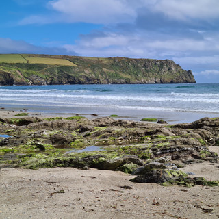 The beach and cliffs are a geologists dream, with interesting rock strata, fossils and a wave cut platform at low tide. From here there is a super walk up to Nare Head, which can be a 4 mile out and back, or a 6 mile circular via Veryan, as described on the National Trust website.