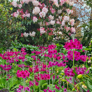 Our final excursion was to Lanhydrock Gardens, also National Trust, so we are getting good value from our membership, especially as many of the coastal carparks here are also free to NT members. Covid restrictions meant that the impressive 19th century house was closed, but the gardens more than made up for it. There are formal gardens in front of the house, but the real glory is the landscaped gardens on the hill behind it. Again the azaleas and rhododendrons provided huge bursts of colour on what was a rather grey day.