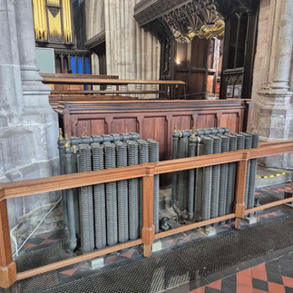 Highlights include a font made from a roman pillar, beautiful stained glass windows from 1450, a stunning mediaeval rood screen, and these 14th and 15th century misericord seats. Not too mention some quirky looking radiators and the original burial sites of Prince Arthur, Henry VIII's older brother and first husband of Catherine of Aragon! How different history might have been.