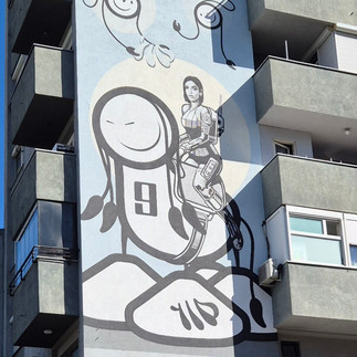 There was interesting street art, including a mural depicting Dua Lipa. Apparently both she and Rita Ora are of Albanian Kosovo descent. The man in the wheelchair was on the side of a building whose only access appeared to be by stairs. There was an international street art event here in June, Meeting of Styles, where over 100 artists worked in some of the cities 'concrete jungle' areas to brighten them up.