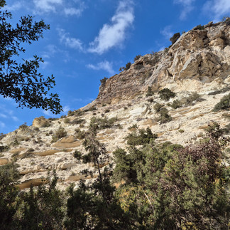 Chris is standing in an 800 year old Olive tree... still sprouting! Did you spot the goat? Cyprus needs rain after a very dry summer, and there was just a tiny trickle of water in the stream, but this can become a raging torrent after heavy downpours.