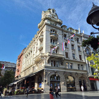 One striking building that remains is the Art nouveau Hotel Moskva, built as an Insurance building when Belgrade's train network linked Belgrade to London, Paris, Vienna and Istanbul via the Orient Express. It soon became a grand hotel to cater for the equally grand customers. Paris fashion houses were based here, wonderful concerts were held with the most famous international orchestras, and beautiful buildings sprang up.